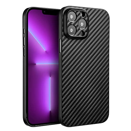 Doupi UltraSlim Custodia per iPhone 13 PRO Max (6,7 Pollici), Carbon Fiber Look Fibra di Carbonio ottiche Piuma Facile Cover Hardcase, Nero