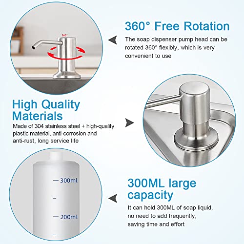 【Design Pratico】- Questo dispenser di sapone per lavello da incasso adotta un design dall'aspetto semplice ed elegante, che non solo aggiunge un tocco elegante alla tua cucina o al tuo bagno, ma facilita anche il tuo uso quotidiano. L'ugello dell'erogatore sapone può essere facilmente ruotato di 360° all'angolazione desiderata per soddisfare le diverse esigenze di slot singoli o doppi.