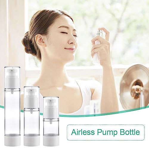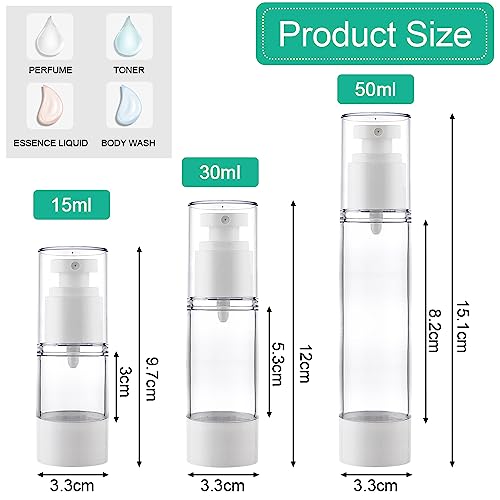 DOUSELLA 12 Pz Flaconi Vuoti Viaggio Bottiglie a Pompa Airless Bottiglie a Pressione Dispenser Bottiglie di Plastica Flacone Spray Vuoto Ricaricabile per Crema, Lozione - 15ml/30ml/50ml, Trasparenti