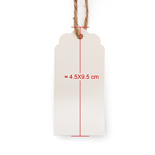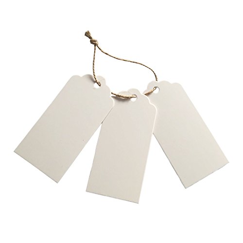 Doutop Doutop etichetta di carta kraft da appendere. Etichette regalo vintage di carta kraft. 100 pezzi con 10 m di filo di iuta spesso. Per biglietti di Natale, bomboniere, biglietti di ringraziamento, etichette per regali di compleanno, segnalibri, Rectangular Tags Paper White