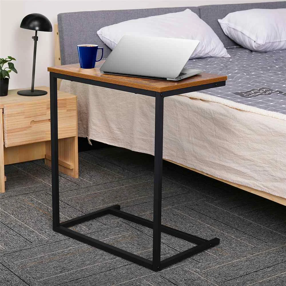 Douxlife Vintage C Shape Coffee Table Wooden Metal Frame Sofa Side Table End Table Home computer Desk Storage Holders Furniture