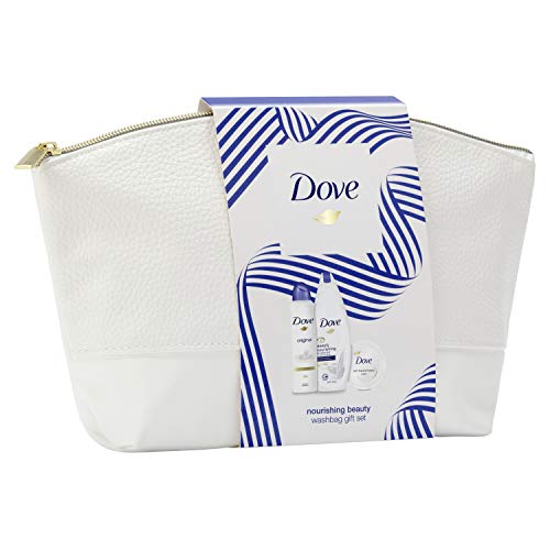 Dove Il set regalo per il lavaggio di bellezza nutriente dispone di 3 regali a grandezza naturale per le donne per un rituale di bellezza premurosa: deodorante originale anti-sudore, lavaggio del corpo profondamente nutriente e crema nutriente ricca