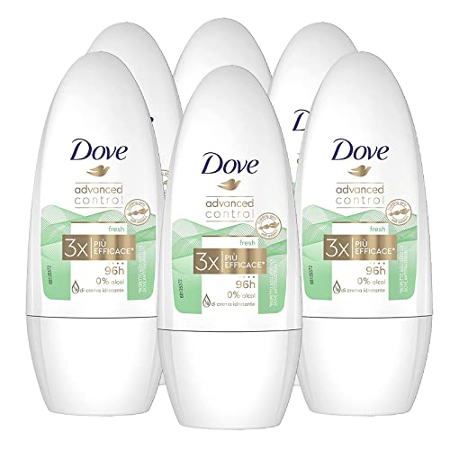 6x Dove Deodorante Roll-On Advanced Control Fresh Senza Alcol Protezione fino a 96 Ore - 6 Flaconi da 50ml