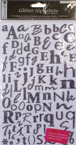 Dovecraft Glitter Alphabets - Lettere dell'alfabeto adesive, con Brillantini, Colore: Grigio Antracite