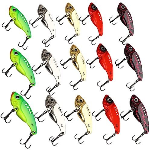 Kit di esche da pesca conveniente: il set di esche da pesca con esche a lama include 3 pesi più comuni. 1/4oz (7g)* 5pcs, 3/8oz(10g)* 5pcs, 1/3oz(15g) * 5pcs. Totale 15 pezzi nella confezione. E 5 colori altamente visibili aiutano ad attirare i pesci. Kit di esche da pesca abbastanza utile ed economico.