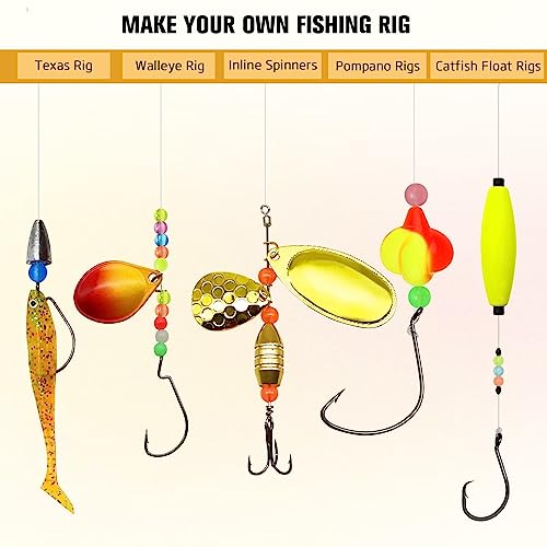 CREARE LA PROPRIA ATTREZZATURA DA PESCA: Utilizzate le perline da pesca per creare le vostre esche da pesca, rendendo la pesca più divertente. Suggerimenti per le perline da pesca: le perline da pesca da 0,24in/6mm sono adatte per le esche in linea Spinner rig, Spinner bait rig, Fluke rig, Pampano rig;