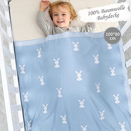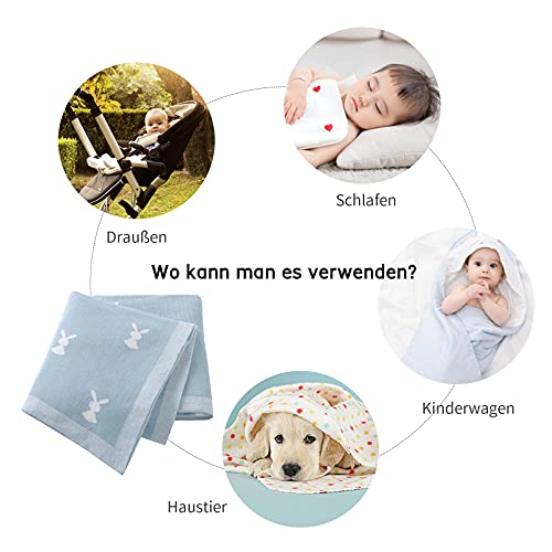 DovFanny Coperta in 100% cotone, per neonati e bambini, con grazioso coniglietto rosa