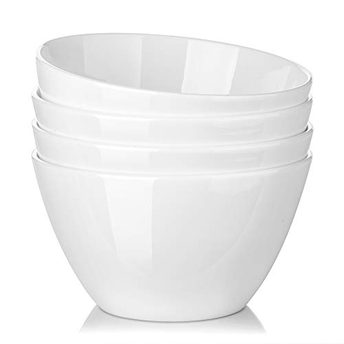 DOWAN Deep Soup / Cereal Bowls, Bone China 350ml - 4 confezioni, bianco