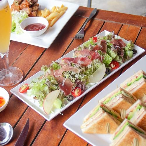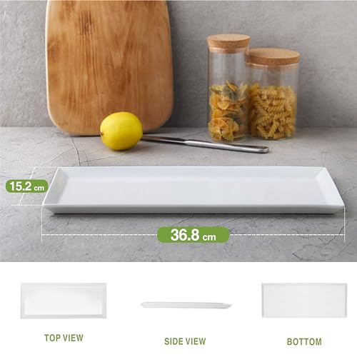 DOWAN Grandi Piatti da Portata Rettangolari - 36,8 x15,2 cm Piatti in Porcellana, Piatti da Portata Bianchi per Carne, Antipasti, Cibo, Dessert, Sushi, Feste, Bianco, Set da 4