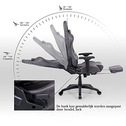 Dowinx Sedia Gaming Chair Chair Stile ergonomico da Corsa con Massaggio Supporto Lombare Poltrona da Ufficio per Computer in Pelle PU con poggiapiedi Retrattile Grigio