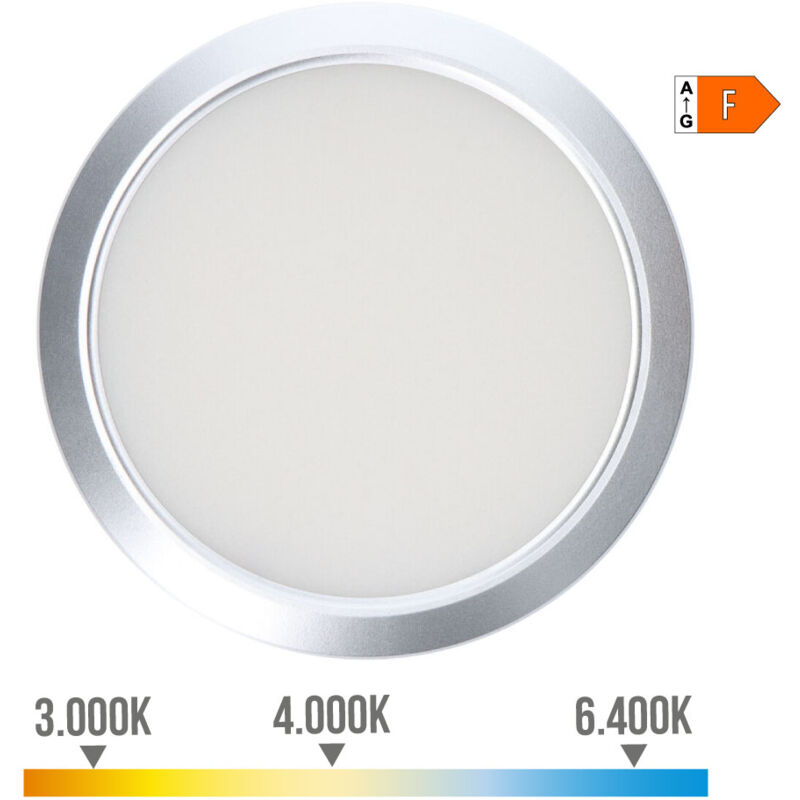DOWNLIGHT DA SUPERFICIE/REMETALLATO LED ORIENTABILE 20W 2.050lm Ra80 STRUTTURA CROMATA Ø22,5cm EDM. DIAMETRO REGOLABILE DA Ø6,5 A 17cm. TEMPERATURA COLORE REGOLABILE: 6400K- 4000K - 3000K IP20. LA TEMPERATURA DI COLORE DEVE ESSERE SCELTA PRIMA DELL'INSTALLAZIONE. Caratteristiche del downlight LED da superficie/incasso orientabile 20w 2.050lm. EDM Potenza: 20 W Tensione: 220 - 240 V - 50 Hz < li> Grado di protezione: IP20 Misure: Ø 22,5 x 4 cm Temperatura luce: 3.200 K - 4.000 K - 6.400 K Tipo di luce: Luce calda - neutra - fredda Classe energetica: F Colore: Cornice cromata Tipo: Downlight LED orientabile < b>Luminosità: 2.050 lm Incastro: Regolabile da Ø 6,5 cm a Ø 17 cm Quantità di LED: 400 Durata stimata: 20.000 ore CRI (indice di resa cromatica: Ra 80