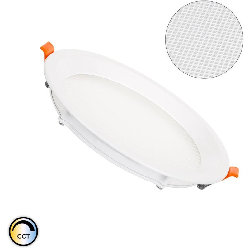 La SuperSlim LED 16W CCT Selezionabile Circolare Microprismatica (UGR17) LIFUD Foro Ø 150mm si distingue per il suo design sottile e minimalista e per il diffusore opal che offre una luce omogenea, ideale per un uso domestico o commerciale. Caratteristiche della SuperSlim LED 16W CCT Selezionabile Circolare Microprismatica (UGR17) LIFUD Foro Ø 150mm Dotata di un chip LED SMD 2835, offre una luminosità di 1900lm distribuita in un angolo di 120° che la rende perfetta come sorgente di illuminazione generale. Funziona con una tensione di 220-240V AC ma è progettata per sopportare sbalzi di tensione tra 85-265V AC. Inoltre, si connette direttamente alla rete elettrica dato che include un driver LIFUD che si incarica di adattare la tensione della rete a quella dell'input dell'apparecchio. Poiché è un elemento di illuminazione LED di classe II, non necessita di messa a terra. Si distingue per il basso livello di abbagliamento (UGR < 17). L'abbagliamento causato dall'illuminazione può
