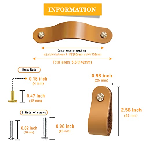 [FACILE DA INSTALLARE]: maniglie per mobili in pelle con viti abbinate. Dopo aver acquistato la maniglia, forare il mobile, installare le viti e la maniglia, il foro e la maniglia sono completamente coerenti. Le maniglie e le manopole dei cassetti hanno due lunghezze delle viti tra cui scegliere, adatte per tavole di legno spesse da 16 a 25 mm. Distanza tra i fori regolabile. Adatto per fori con centro tra 90 mm e 102 mm.
