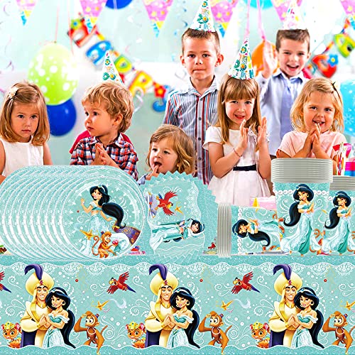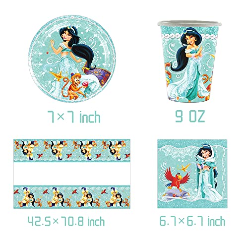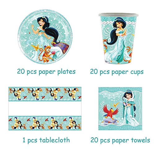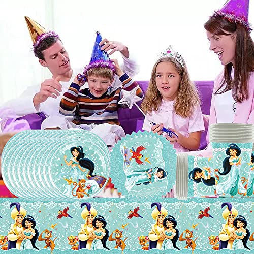 Doyomtoy 61Pcs Principessa Jasmine Compleanno stoviglie, Principessa Partito Forniture di Set, Set Che comprende tovaglia Piatti Tazze tovaglioli per Baby Shower, Matrimoni, Anniversario (20 Ospiti)