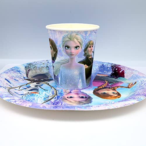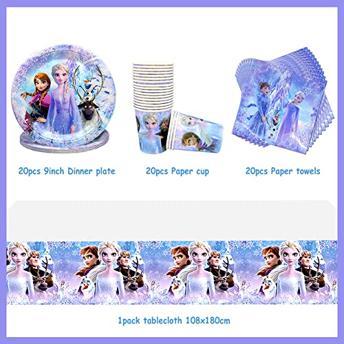 Doyomtoy 61 Pezzi Bambini Set di Stoviglie per Compleanno, Piattini da 20 Bicchieri e 20 Tovaglioli, Tovaglia,Principesse di Compleanno Set,Decorazione per Feste