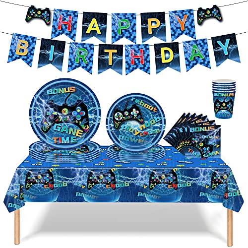 Doyomtoy 53 Pezzi Stoviglie Video Game Party, Stoviglie Per Feste di Gioco Set, Inclusi Piatti di Video Game, Tazze, Tovaglioli, Tovaglie, Forniture Per Feste di Compleanno Per Videogiochi