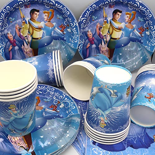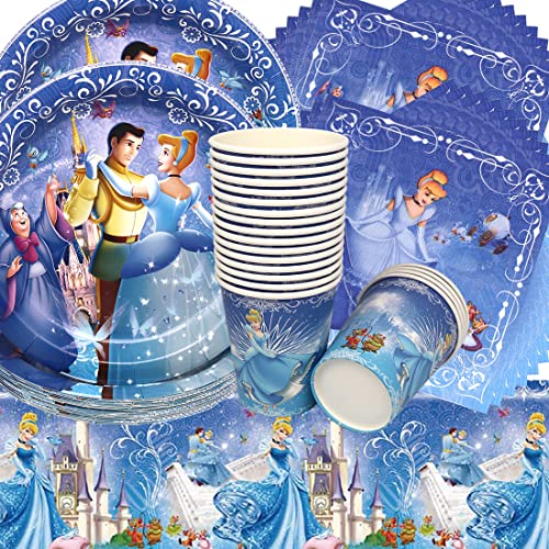 Doyomtoy Stoviglie per Feste, 61 Pezzi Prinzessin Compleanno Decorazioni Piatti di Compleanno Cenerentola,Tazze,Tovaglioli per Bambini Compleanno Favors