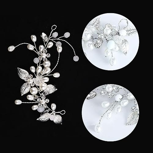 DOYUKY Accessori Capelli Sposa, Argento Fermagli per Capelli a Forma di Fiore da Sposa, Perla Decorazioni Capelli, Capelli Accessori per Donne e Ragazze