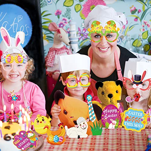 DPKOW 34pcs Divertenti Pasqua Feste Accessori Decorazioni, Cartelli Freccia per Caccia alle Uova di Pasqua, Pasqua Photo Booth Props, Pasqua Festa Occhiali, Adulti Bambini Pasqua Bomboniere Forniture