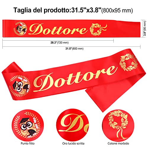 【Fascia da Dottore per Laurea】Design con: "Dottore", laurea gufo, corone alloro laurea, diploma. La fascia di laurea di dottore laureata è realizzata in poliestere di alta qualità, setosa e lucida, comoda da indossare, resistente, pieghevole.