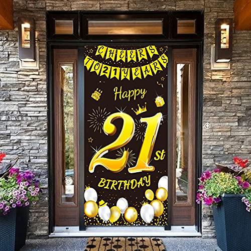 DPKOW Oro Nero 21 Compleanno Decorazione per Donna Uomo, Oro Nero 21 Anni Compleanno Striscione Porta Sfondo Decorazione, 21 Anni Compleanno Parete Tavolo Giardino Decorazione, 185 x 90cm