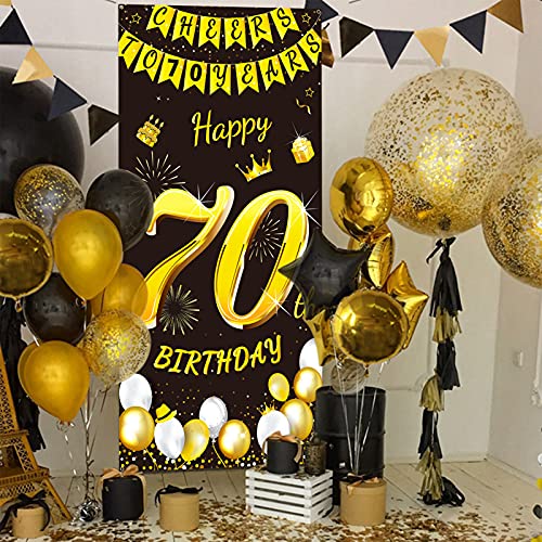 DPKOW Oro Nero 70 Compleanno Decorazione per Donna Uomo, Oro Nero 70 Anni Compleanno Striscione Porta Sfondo Decorazione, 70 Anni Compleanno Parete Tavolo Giardino Decorazione, 185 x 90cm