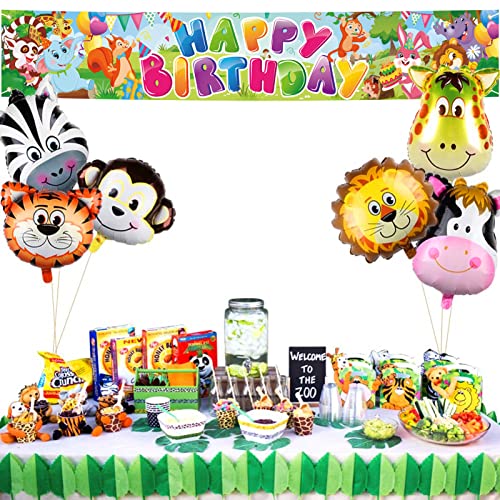 【Decorazioni di buon compleanno】Striscione da appendere con animali ideale per decorazioni per feste di compleanno a tema giungla tropicale, forniture per decorazioni per feste di compleanno per bambini, decorazioni di benvenuto per il compleanno di bambine, decorazioni per giardini all'aperto di compleanno, decorazioni per pareti di tavoli di casa. Puoi appendere gli banner di compleanno per bambini sul soffitto e sull'albero, anche come runner da tavolo, sfondo fotografico.