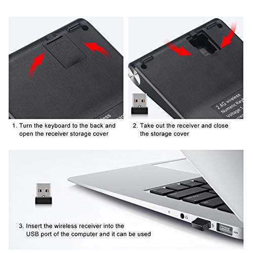 Dpofirs Tastierino numerico wireless a 20 tasti, mini tastiera numerica ultra sottile portatile 2.4G, tastiera digitale contabile USB per notebook PC desktop portatile(Nero)