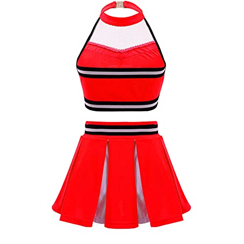 DPois Costume Cheer-Leader Bambina Scuola Uniforme da Cheerleading Crop Top Corto Scollo a V Gonna a Pieghe Cosplay Travestimenti Halloween Festa Costume Carnevale Rosso 16 Anni