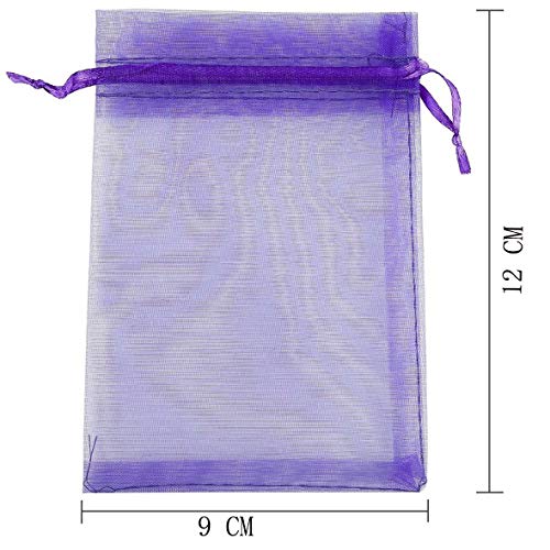 Dproptel - Confezione da 100 sacchetti per bomboniere in organza, con coulisse, per matrimoni, feste, feste, regali, caramelle, decorazione (viola)