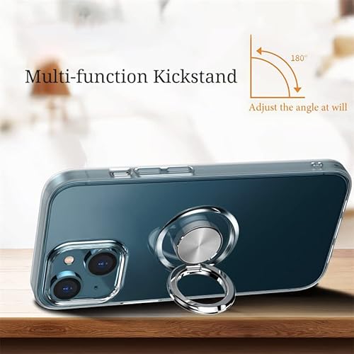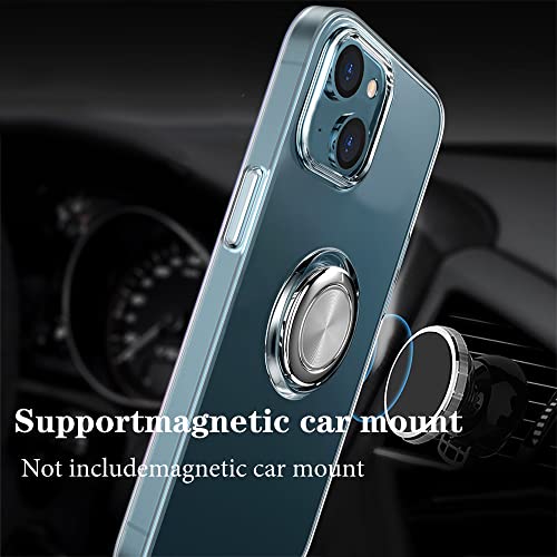 Dqtaoply Custodia per iPhone 15 Plus, trasparente con supporto ad anello a 360 ° TPU silicone bumper custodia morbida magnetica per auto copertura del telefono per iPhone 15 Plus trasparente