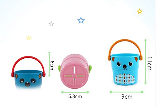 DQTYE Divertente 5 PZ Sicuro di Plastica Baby Bath Doccia Giocattoli Mini Bagno Versare Secchio Impilabile Tazze Vasca da Bagno Gioco Animale Cartone Animato per 1 Anno Bambino Toddlers Bambini