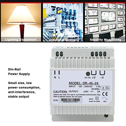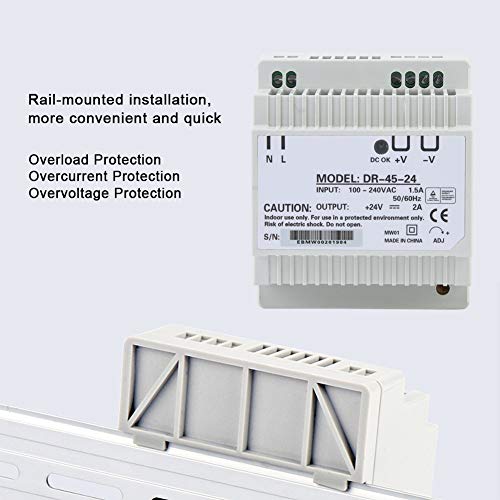 DR-45-24 Alimentatore per guida DIN a uscita singola, alimentatore switching AC/DC, 24V 2A 45W, raffreddamento automatico, per illuminazione a LED tessile