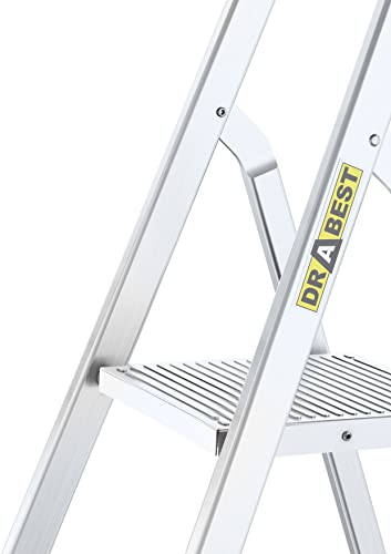 Drabest Scala Domestica in Alluminio a 6 Gradini Portata 125kg - Scaletta con Guida di Sicurezza e Piattaforma per Scale da Lavoro - Scale Multiuso - Scaletta a 6 Gradini - 48x191x12cm