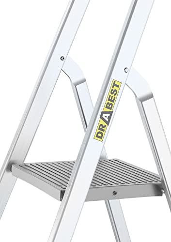 DRABEST SCALETTE SERIE PRO Scala Alluminio 7 gradini Legera Pieghevole Portata max 150 kg Scala per Casa Certificata Gancio gratuito