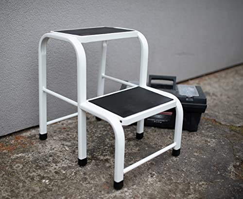 DRABEST Sgabello Acciaio 2 Gradini Antiscivolo Piattaforma di lavoro Portata 150 kg Scaletta Doppio Scalino