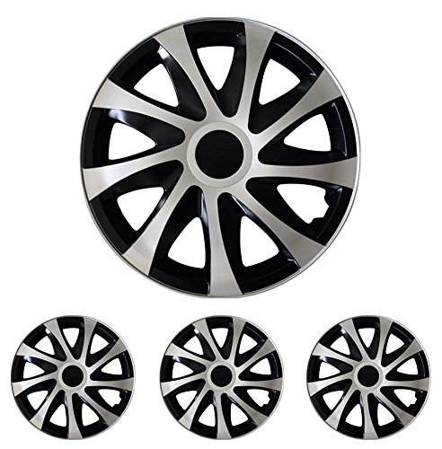 NRM DRACO CS 16 Copricerchi Universali, 16", Bicolore Nero / Silver, 4 pezzi