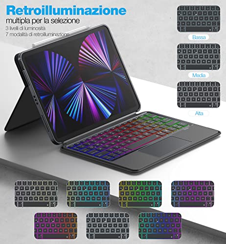 Dracool Custodia Tastiera per iPad Air 5 2022 / iPad Air 4 2020 10.9 e iPad Pro 11 2021/2020/2018 Tastiera con trackpad Magnetica Rimovibile Retroilluminata Bluetooth Tastiera Italiano QWERTY, Grigio