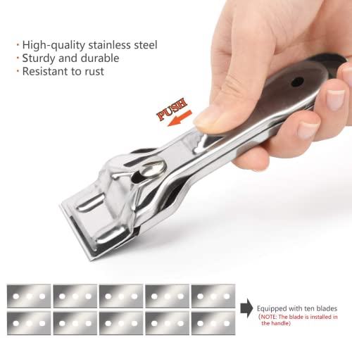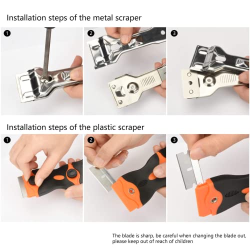 Contenuto della confezione: un raschietto in metallo con 10 raschietti di ricambio, un raschietto a doppio bordo con 20 raschietti di ricambio (10 pezzi in metallo e 10 pezzi in plastica)