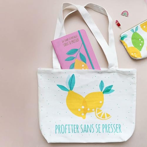 Draeger Paris - Tote Bag Limoni "Profiter (in francese) - Leggero, resistente, interno spazioso, in cotone 100% - Tracolla solida e confortevole - Borsa shopper riutilizzabile
