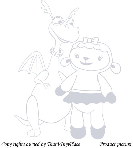 Dragon Stuffy e Lambie lampada da parete sticker 60 cm x 46 cm colore argento metallico medico, camera, DOC McStuffins, camera dei bambini stickers, vinile auto, finestre e autoadesivo della parete, muro di finestre Art, decalcomanie, ornamento vinile Thatvinylplace