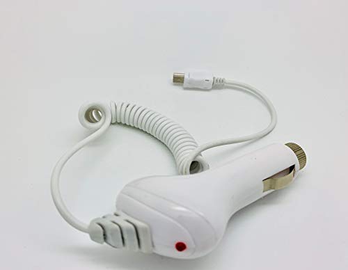 Dragon Trading - Caricabatteria da auto bianco mini USB a spirale con connettore mini USB femmina dritto, adatto per fotocamere da cruscotto, navigatori satellitari, Tom Tom Garmin.