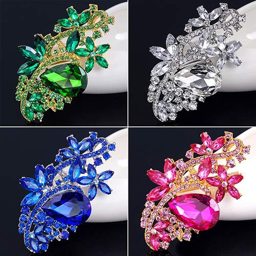 Grande spilla a forma di goccia e fiore con strass, stile alla moda. Decorato con lega e strass brillanti, arte delicata e artigianale.