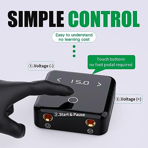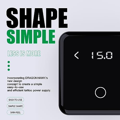 【Design innovativo】Il touch screen dell'alimentatore del tatuaggio del dragonhawk per il funzionamento senza sforzo, le uscite doppie per il passaggio tra le macchine del tatuaggio del liner e dell'shader, facile da usare e l'alimentatore efficiente del tatuaggio.