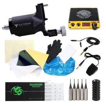 Dragonhawk Professional Tattoo Kit Set Rotary Tattoo Machine Power Needles Ink Sets Accessories