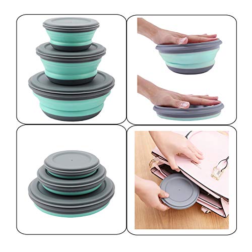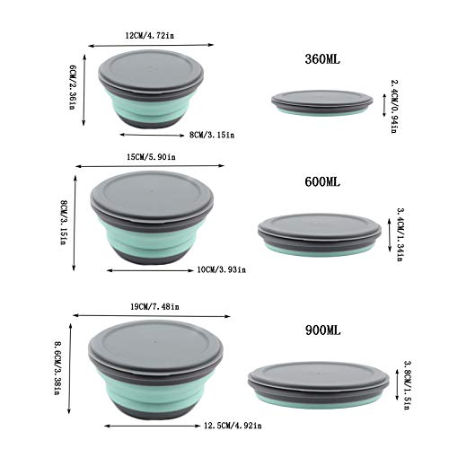DragonX2 Set di Silicone Pieghevole Lunch Box, Set Campeggio Pieghevole Box 3 PZ Ciotola Insalatiera Pieghevole Con Coperchio Ciotola Insalatiera Da Viaggio Pieghevole per Cucina Campeggio All'aperto