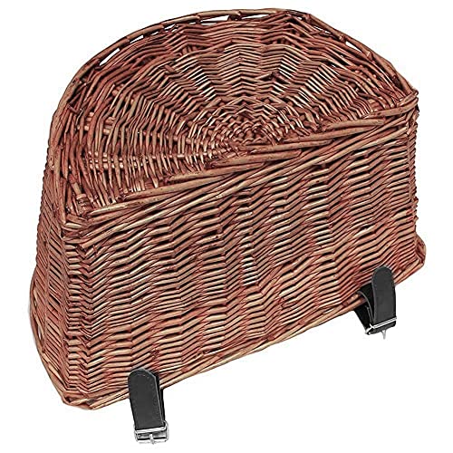 Dreafly Cestino per Bici a Forma di D in Vimini Cestino per la Spesa Portatile Intrecciato a Mano Cestino Artigianale con Cinghie in Pelle, Cesto portaoggetti sul Manubrio Anteriore per Bici