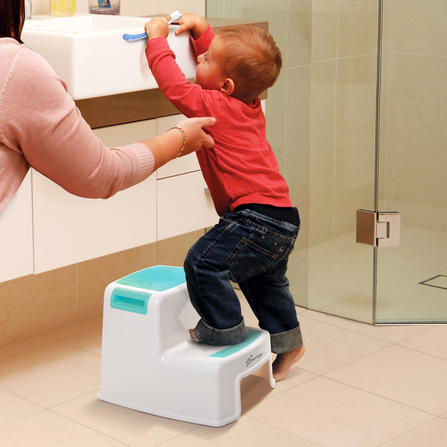 Questo sgabello a 2 gradini aiuterà il tuo bambino a raggiungere il bagno o il lavandino con facilità. Il piano antiscivolo rende la salita ancora più sicura e questo robusto sgabello è anche facile da pulire. Dettagli del prodotto: Materiale: PP e TPE 2 passi Design Colore: Aqua/Bianco Facile da pulire Design robusto Dimensioni 26 x 32,8 x 35cm (HxWxD) Per i bambini a partire da 12 mesi