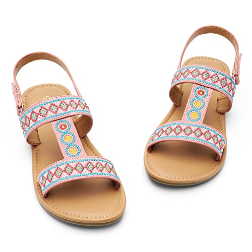 DREAM PAIRS Sandaletti Donna Bohemien Tacco Piatto Estivi Sandali Rosa SDFS2216W-E Dimensione 39 (EUR)