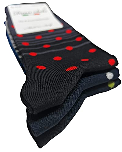 DREAM SOCKS 3 paia calze corte da uomo a metà polpaccio in cotone filo di scozia elasticizzate,molto leggeri made in italy rimagliate a mano. (39-42, 3 Paia mix. POIS/RIGHE)